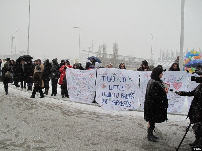 Ndryshe, organizata joqeveritare “Gratë për Gratë” ka shënuar 8 Marsin me një manifestim të pazakontë - me një bashkim të grave në urë, në lagjen Dragodan të Prishtinës.