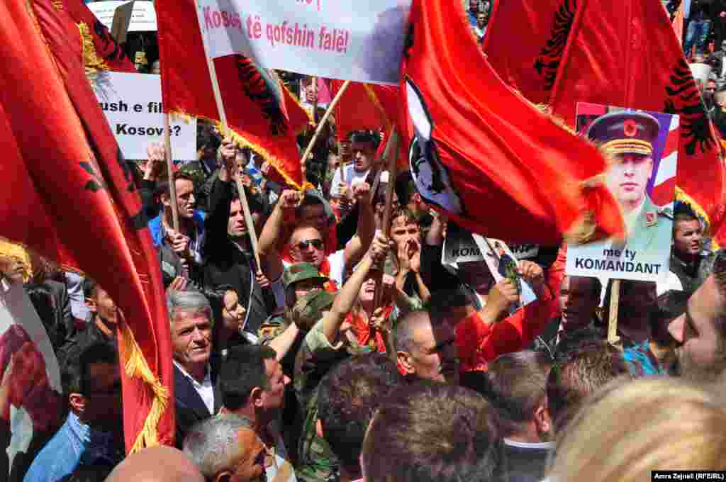 Dhjetëra autobus i shkarkuan udhëtarët prapa Pallatit të Rinisë dhe Sporteve në Prishtinë, që kishin ardhur për të kërkuar lirinë e komandantëve të Ushtrisë Çlirimtare të Kosovës.