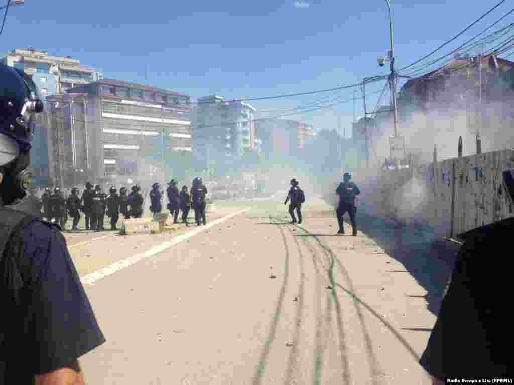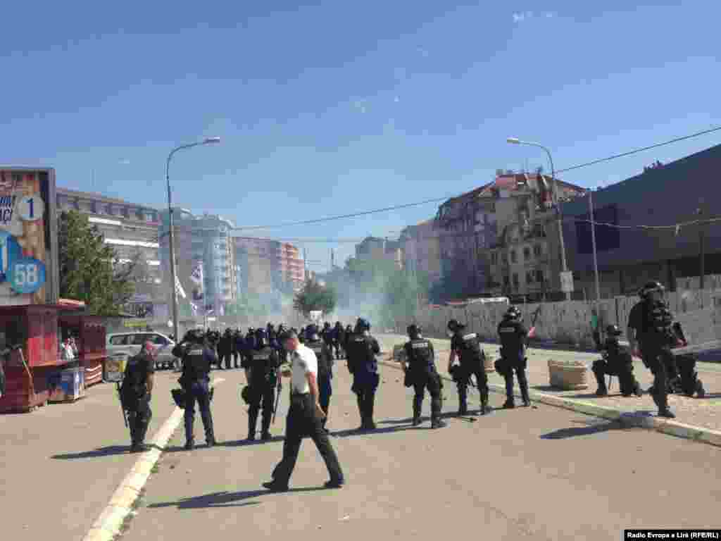 Policia po përdor gazin lotsjellës për të penguar protestuesit që t'i afrohen urës mbi lumin Ibër. Qytetarët, vazhdimisht po gjuajnë me gurë në përpjekje që të çajnë kordonin e policisë. Të paktën dy veturave, një e Policisë së Kosovës dhe një e Policisë së EULEX-it, u është vënë flaka.
