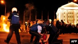 Gjatë përleshjes mes protestuesve dhe forcave të policisë para qeverisë së Maqedonisë të martën, janë lënduar tridhjetë e tetë zyrtarë policorë, gjashtë prej të cilëve kanë marrë lëndime më serioze, dhe një civil, ka bërë të ditur ministrja e Punëve të Brendshme e Maqedonisë Gordana Jankullovska.