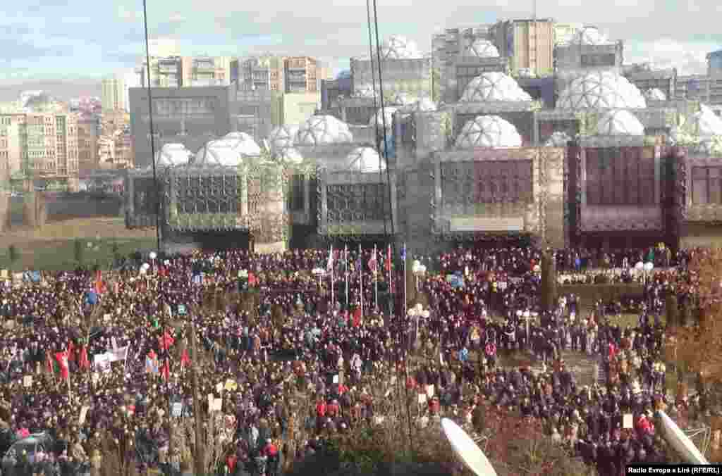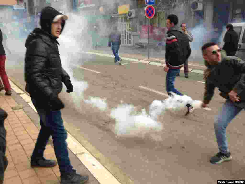 Mjete pritoteknike janë hedhur në drejtim të ndërtesës së Qeverisë së Kosovës, me t'u kryer fjalimet e udhëheqësve të tri partive politike në opozitë.