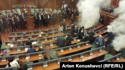 Pas pauzës, ligjëvënësit u mblodhën sërish në sallë, sigurimi u mblodh rreth foltores së Kuvendit, por gazi lotsjellës sërish shpërtheu brenda sallës.