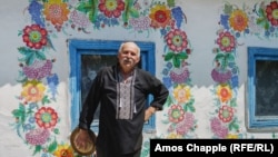Artisti e ruan të gjallë traditën e lashtë ukrainase të shtëpive të pikturuara me lule të varura dhe manaferra të varura në pronën e tij, në stilin e Petrykivkas.