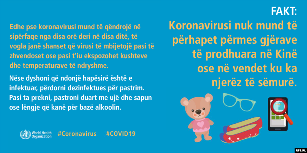 Për sa kohë mbijeton koronavirusi në sipërfaqe, a është rezistent ndaj motit të nxehtë apo të ftohtë, a janë të rinjtë më të mbrojtur dhe të moshuarit më të kërcënuar? Këto janë disa nga pyetjet në të cilat Organizata Botërore e Shëndetësisë i përgjigjet publikut përmes infografikave.