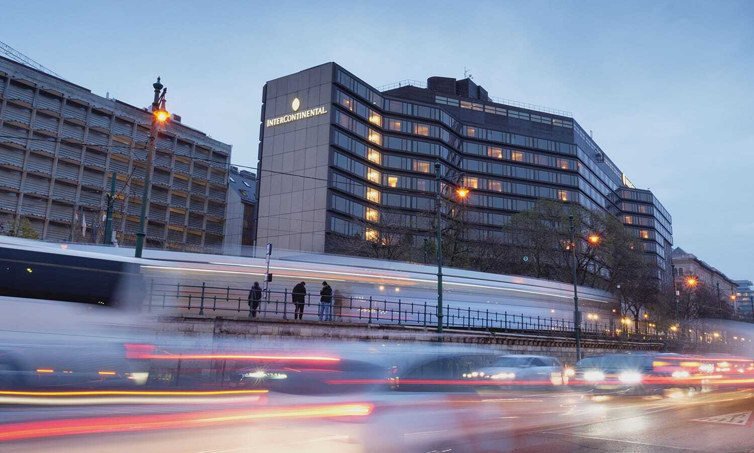 Dunapolota, një hotel luksoz i ndërtuar fillimisht nga kompania Ritz, dukej kështu në vitin 1943. Ndërtesa u dëmtua rëndë gjatë Luftës së Dytë Botërore dhe më vonë u shkatërrua për t'i hapur rrugë hotelit Forum, i cili u hap më 1981 dhe tani mban emrin InterContinental. | Foto nga arkivi: Fortepan/ETH Zurich/Agnes Hirschi