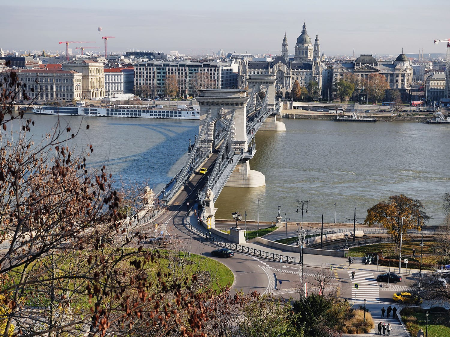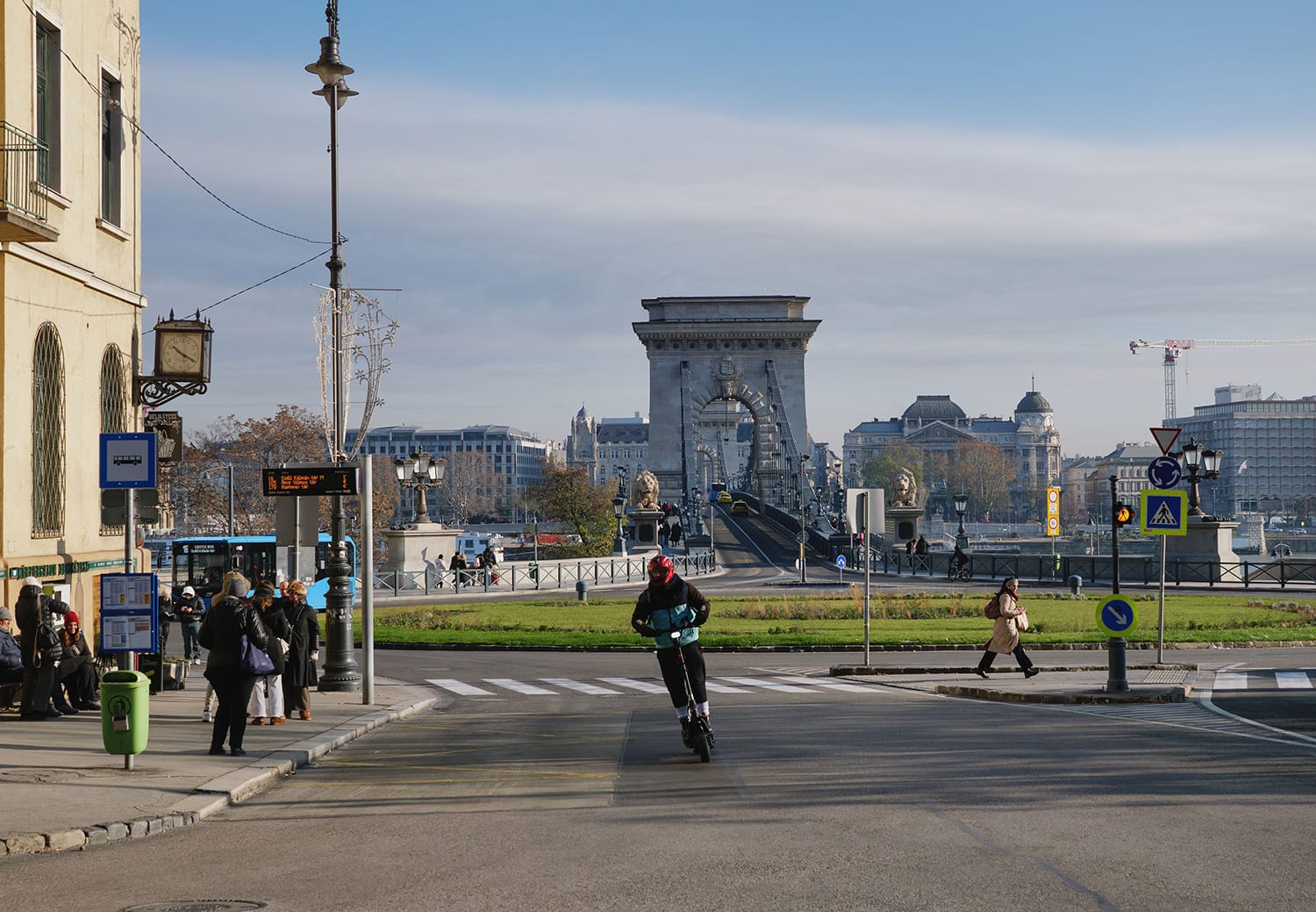 Pikat e pagesës në skajin perëndimor të urës me zinxhirë, Szechenyi, fotografuar rreth vitit 1890. Ura u restaurua pas shkatërrimit të saj nga forcat gjermane derisa po tërhiqeshin në vitin 1945, por pikat e pagesës nuk u rindërtuan. | Foto nga arkivi: Fortepan/Arkivat e Qytetit të Budapestit/Gyorgy Klosz