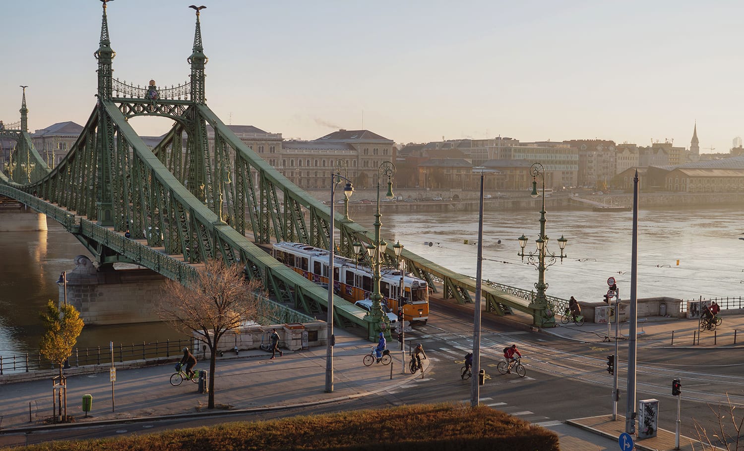 Pikat e pagesës së taksës rrugore në skajin perëndimor të Urës së Lirisë, të fotografuara në vitin 1906. Pagesa për kalimin e Danubit u përdor për të rikthyer paratë e shpenzuara për ndërtimin e disa prej urave elegante të Budapestit. Pas vitit 1918, kërkesa e urryer e pagesës përfundoi dhe pothuajse të gjitha pikat e pagesës u shkatërruan pasi u dëmtuan në Luftën e Dytë Botërore. Sot, dy pikat e vetme të mbetura të pagesës ndodhen të dyja në hyrjen lindore të Urës së Lirisë. | Foto nga arkivi: Fortepan/Deutsche Fotothek/Bruck & Son