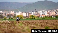 Fermeri Gjylazim Ibrahimi dhe djali i tij duke kryer mbjelljet pranverore. Foto:Bujar Terstena (RFE/RL)