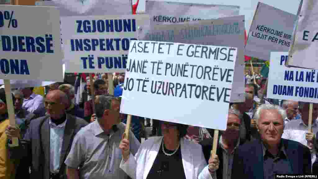 Pensionistë, punëtorë e të papunë, por edhe të rinj kanë marrë pjesë në protestën, të cilën e ka organizuar Bashkimi i Sindikatave të Pavarura të Kosovës, që është mbajtur në sheshin “Nëna Terezë”, në Prishtinë.
