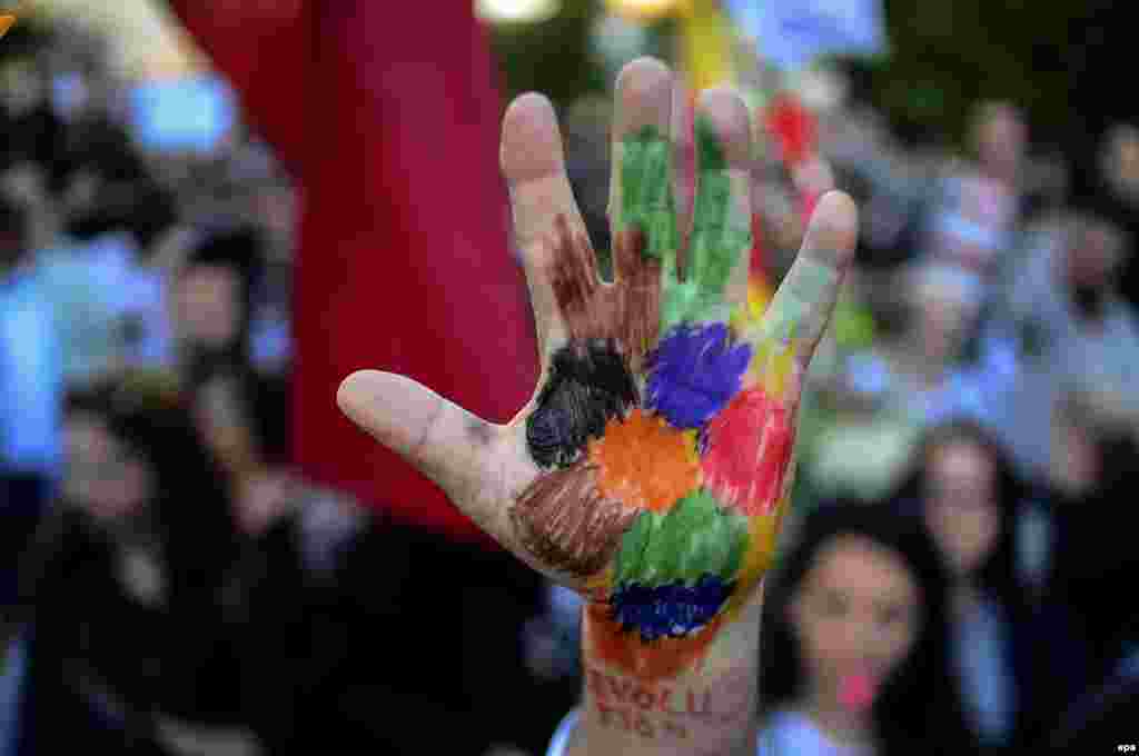 Protestuesit në Shkup kanë derdhur ngjyrë në rrugë para ndërtesës së Qeverisë, gjatë protestës së quajtur "Revolucioni shumëngjyrësh". Protestat kundër Qeverisë kanë hyrë në ditën e dhjetë. Pas dështimit të takimit të Vjenës, partitë akuzojnë njëra-tjetrën, ndërkohë që protestat nuk kanë të ndalur.