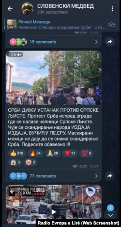 Në një video të datës 13 qershor, të publikuar në kanalin “Ariu sllav”, në përshkrim thuhet: “Serbët po nisin kryengritje kundër Listës Serbe” me thirrjen “Shpërndajeni obligueshëm”.