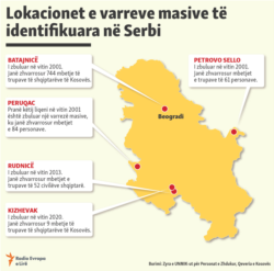 Vendndodhjet e varrezave masive të identifikuara në Serbi